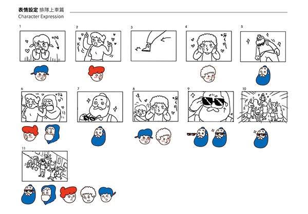 据悉,这部作品的主画面由插画师林志恒完成,平面设计部分则是由四口田设计总监田修铨进行,影像的处理则是由白辐射影像工作室创作。 以提醒意味比较浓的黄色为主色,搭配以红、蓝、白的配色来起到吸引乘客的作用。在角色设置上,运用不同年龄层的动漫人物提醒乘客要注意安全,文明出行。